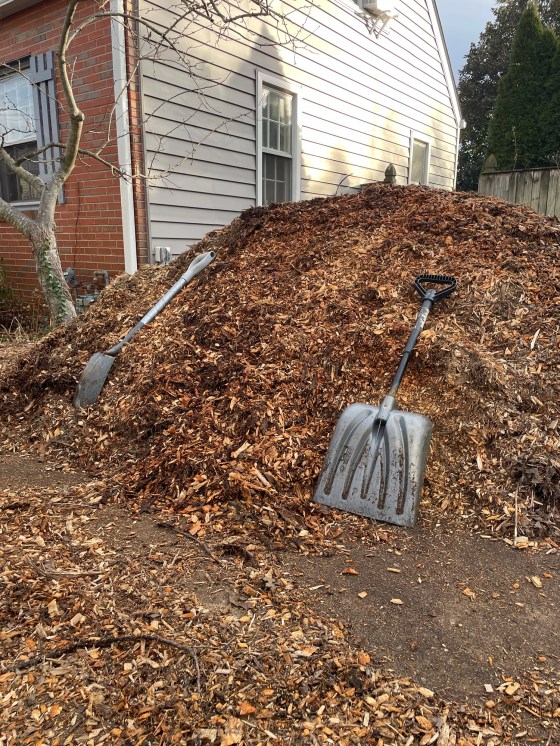 I finished construction on the stepped planters. Now for filling them. Every imaginable piece of yard debris has gone in…