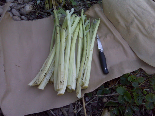 After their nap under a paper blanket they were pale and celery like, and covered with sow bugs and slugs. Not terribly appetizing. I brought them inside and consulted Alice Waters, who told me to wash them, cut them into three-inch lengths, simmer them for 45 minutes, and then make a gratin with them (cream, salt and pepper, cheese). She also said that young, tender stalks could be eaten raw. I tried a white young thing – and spat it out. It tasted like an aged dandelion. I went on (doubtfully) with the recipe. The moment the water with the cardoons began to simmer, the house was infused with the smell of…artichokes. Amazing.