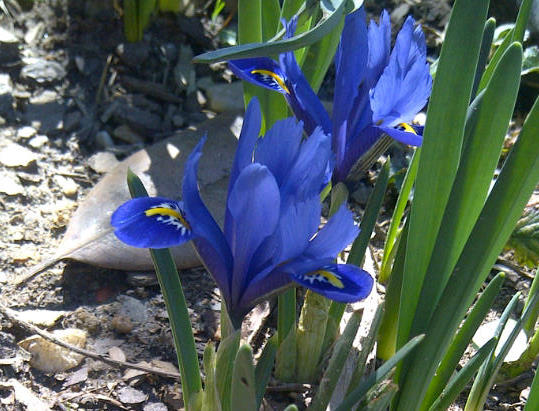 Standing on the back porch yesterday I saw a flash of blue from the bed underneath the magnolia and went to pick up what I thought must be trash – I hadn’t planted anything blue there! And I found these little treasures: tiny irises (or what look like irises?) about four inches high growing among the daffodils. I must have planted them last fall, but I have no recollection of it. I should forget planting things more often, because the wonder of finding these little jewels was lovely.