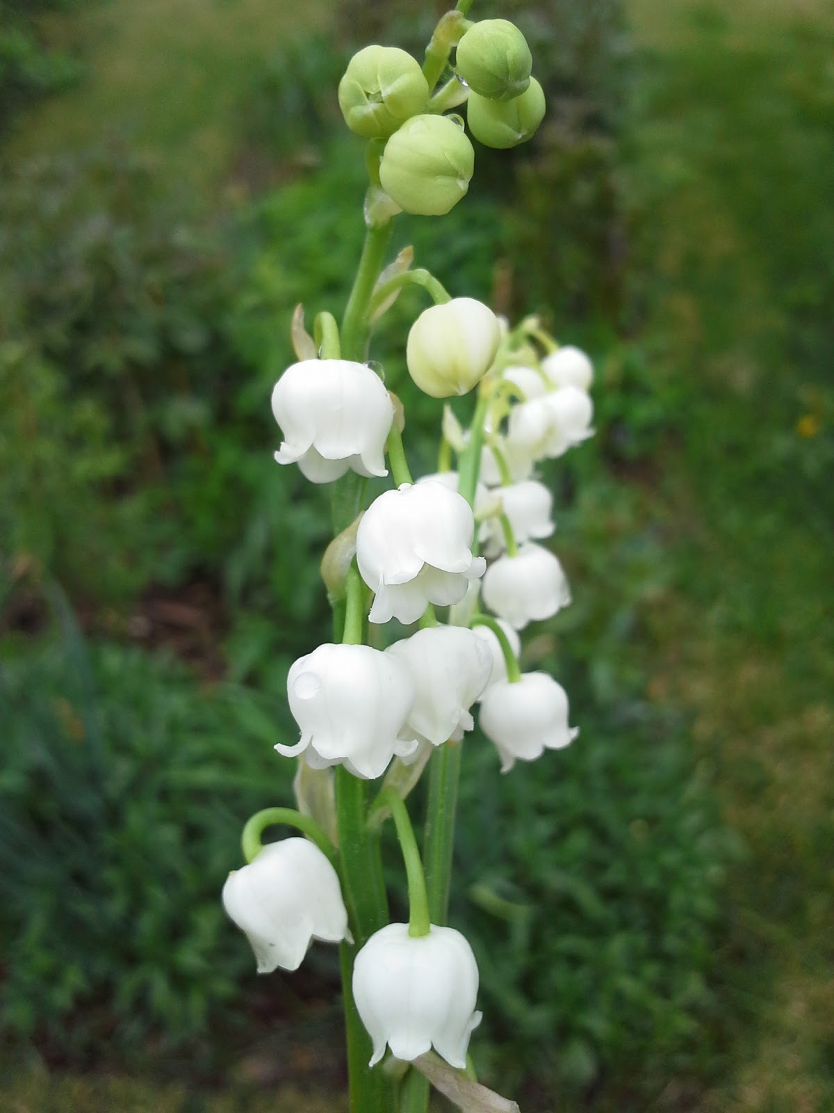Those little white bells along their green stems are perfuming my living room, along with a vase of white and purple lilacs beside them. When I sit down in my chair to read – every time! – I am surprised by the scent.