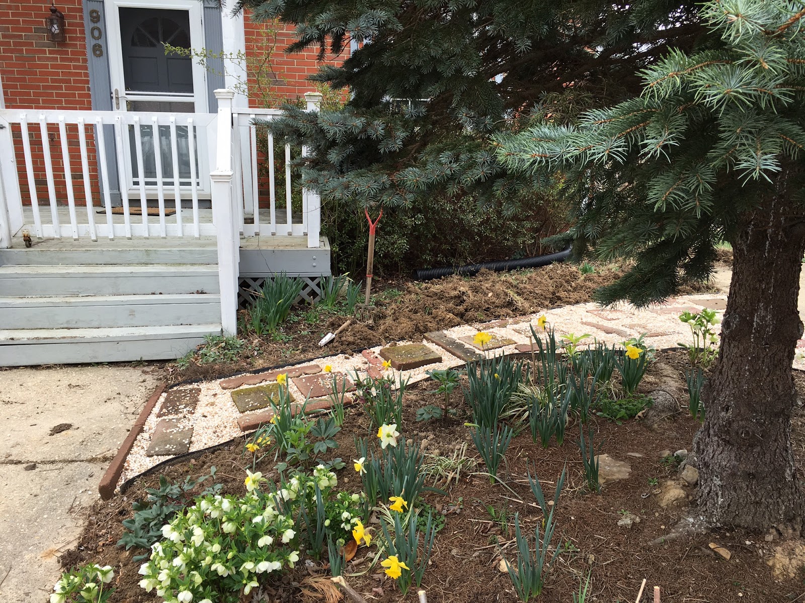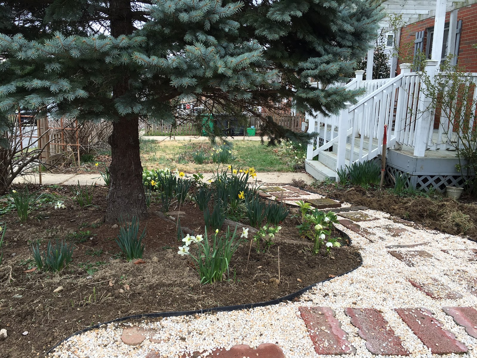 One warm-ish day in February I decided that what we really needed was a gravel path between the driveway and the front path. The grass was trampled and thin from all of us cutting across rather than going around, and I have been eying the area bound by the house, the driveway, the sidewalk, and the front path for years as potential garden bed. But digging out grass and building paths is no easy task, so I procrastinated. Until that warm-ish day in February.