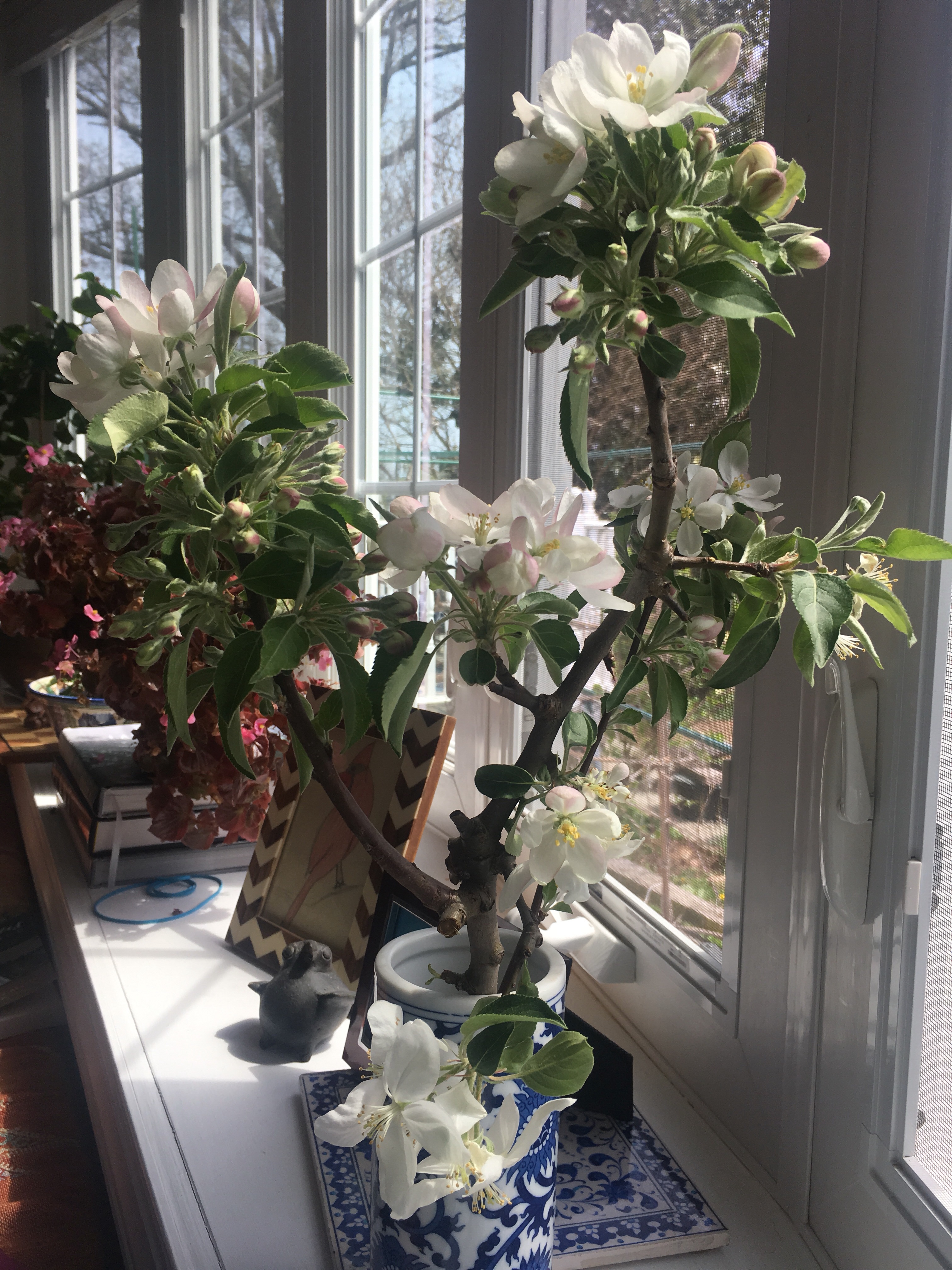 This particular apple is Hawe’s Crab, supposedly Thomas Jefferson’s favorite cider apple. I had dreams of making cider or jelly from them, but the squirrels steal every single one every year, and so I just get the bloom. Which is enough.