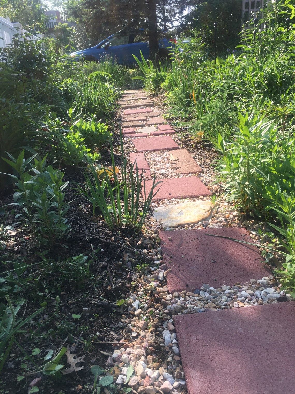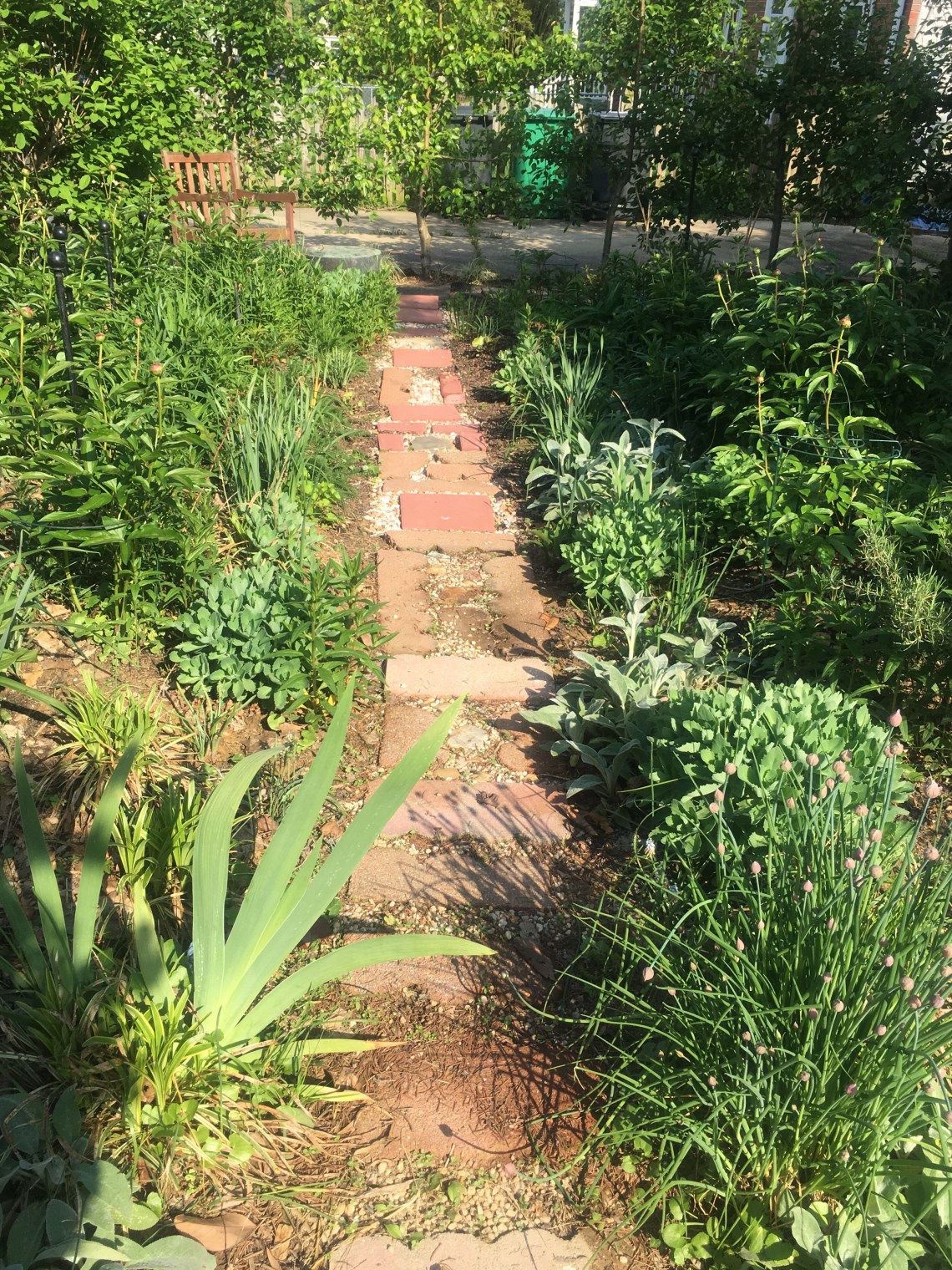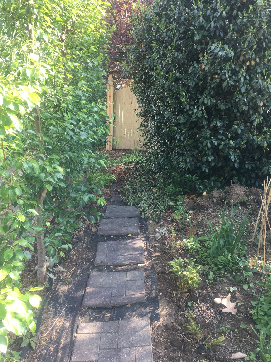 A year ago the sewage pipe burst and I lost my front garden. A garden is back – different garden, one with infinitely worse soil (a top dressing of fetid subsoil watered with gardener’s tears is not good growing medium) but with new possibilities. I ran a path through the middle and took out all the grass, and we just had a gate put in to the back so the front path now has somewhere to go.