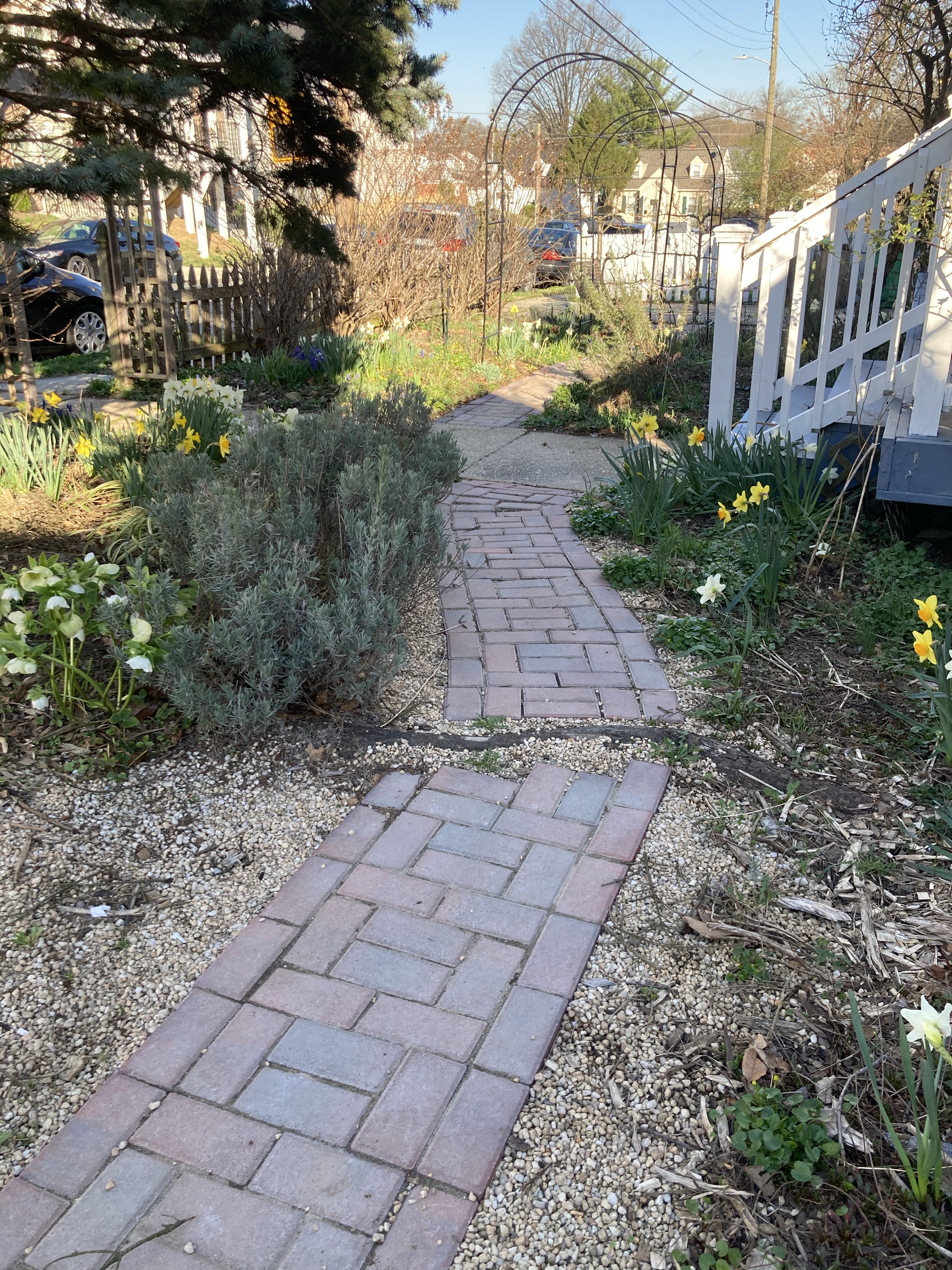 The brick path now goes from the driveway to the front walk and down the front garden to the espalier pears, where it hangs a right and runs under the camellias and through the gate to the back. It is far from perfect, but it is a way forward.