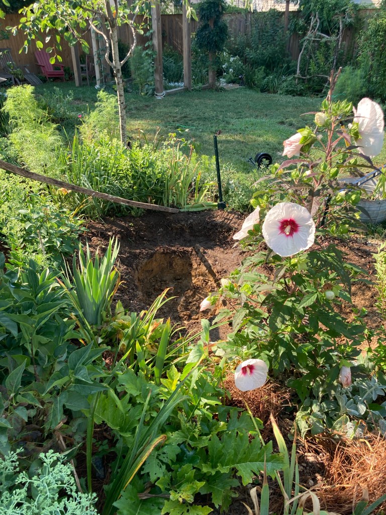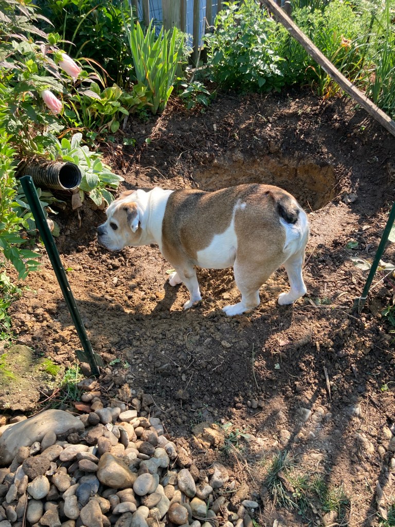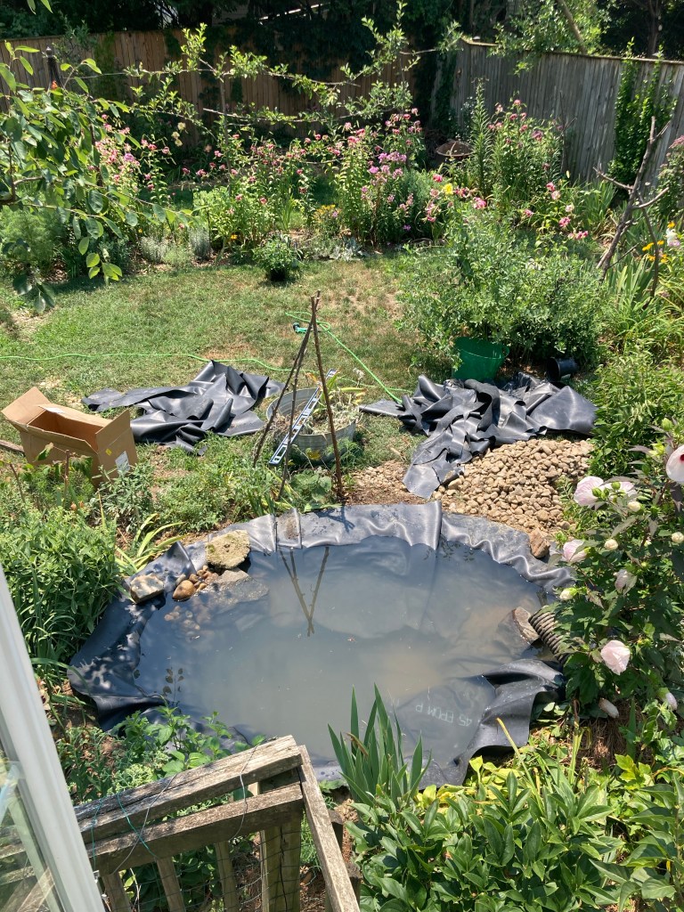 I’ve been watching a lot of Gardeners World, and Monty Don told me I need a pond. Plus I spend a lot of time staring out the bay window watching birds and other beasts, and I figure a pond will draw more of them. So on my second week of vacation I built one.