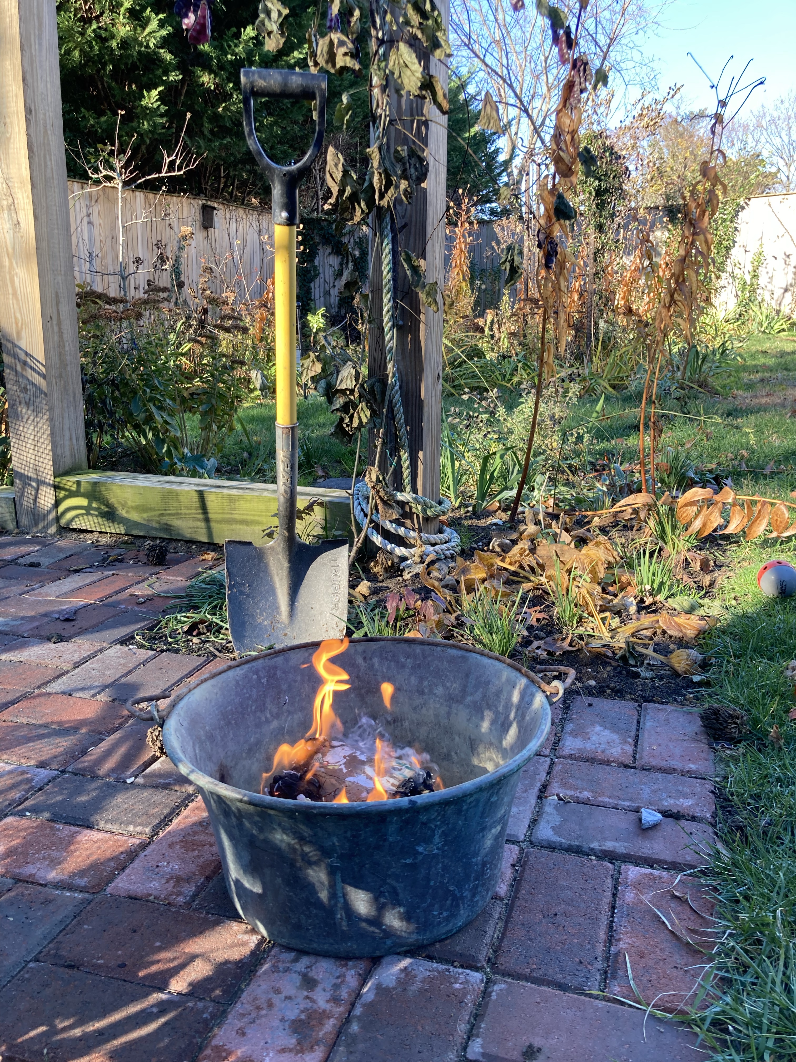 So I put on winter gloves and a down vest, lit a little fire in a bucket to keep me company, and planted two hundred bulbs.