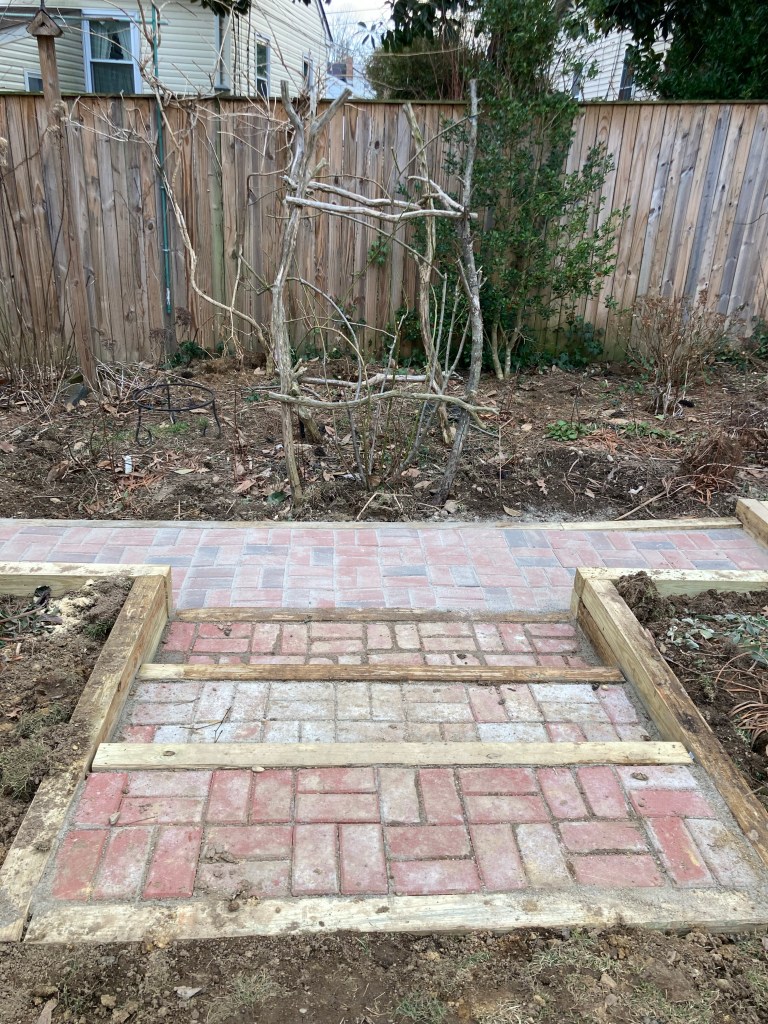 This winter’s project was a set of shallow steps and a retaining wall to manage the backyard’s slope.