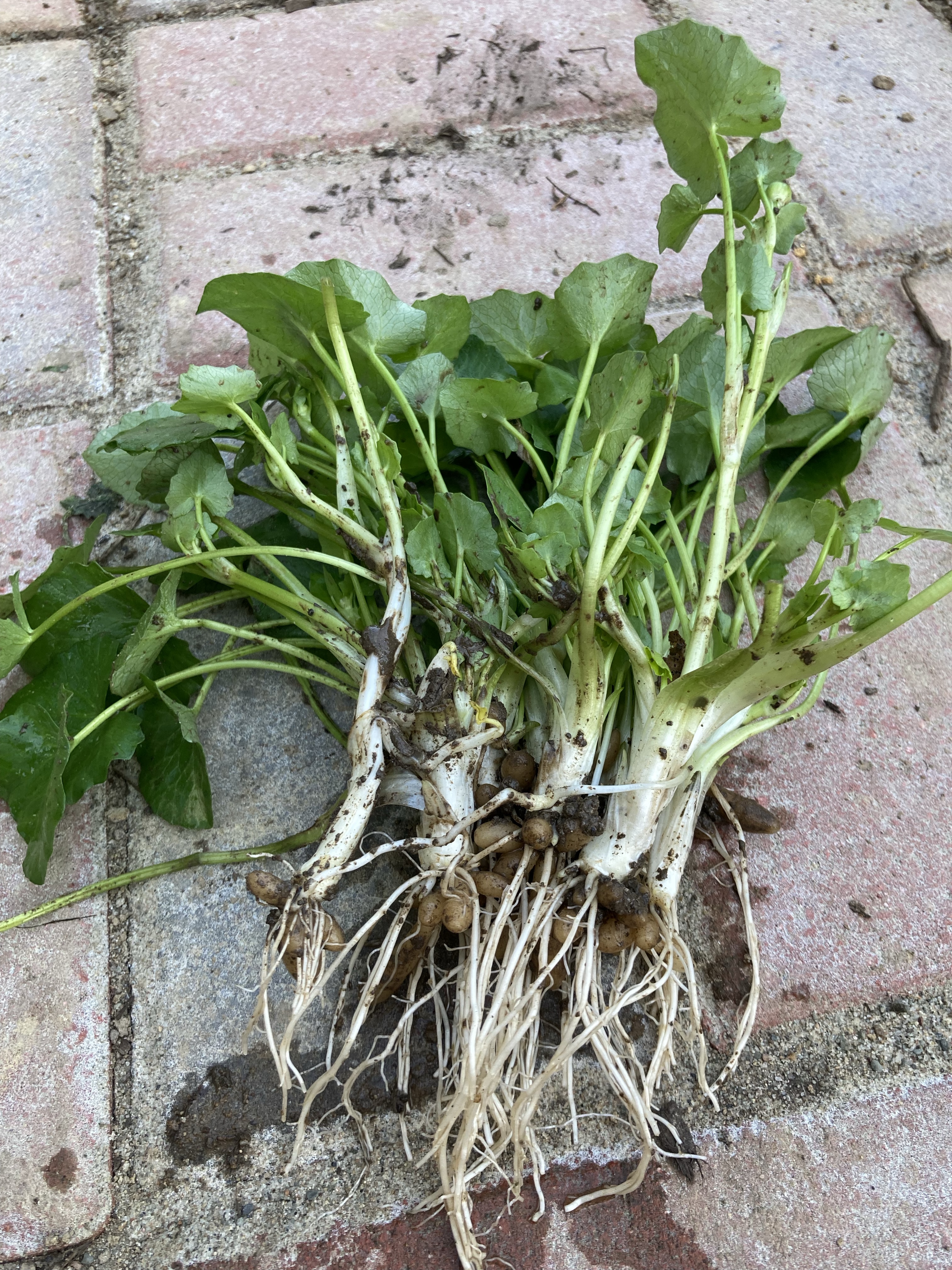 I am trying to get as much of the dratted stuff out as I can before I put down mulch. So far I have filled two large trash cans for the municipal composters to haul away, and there will be more.