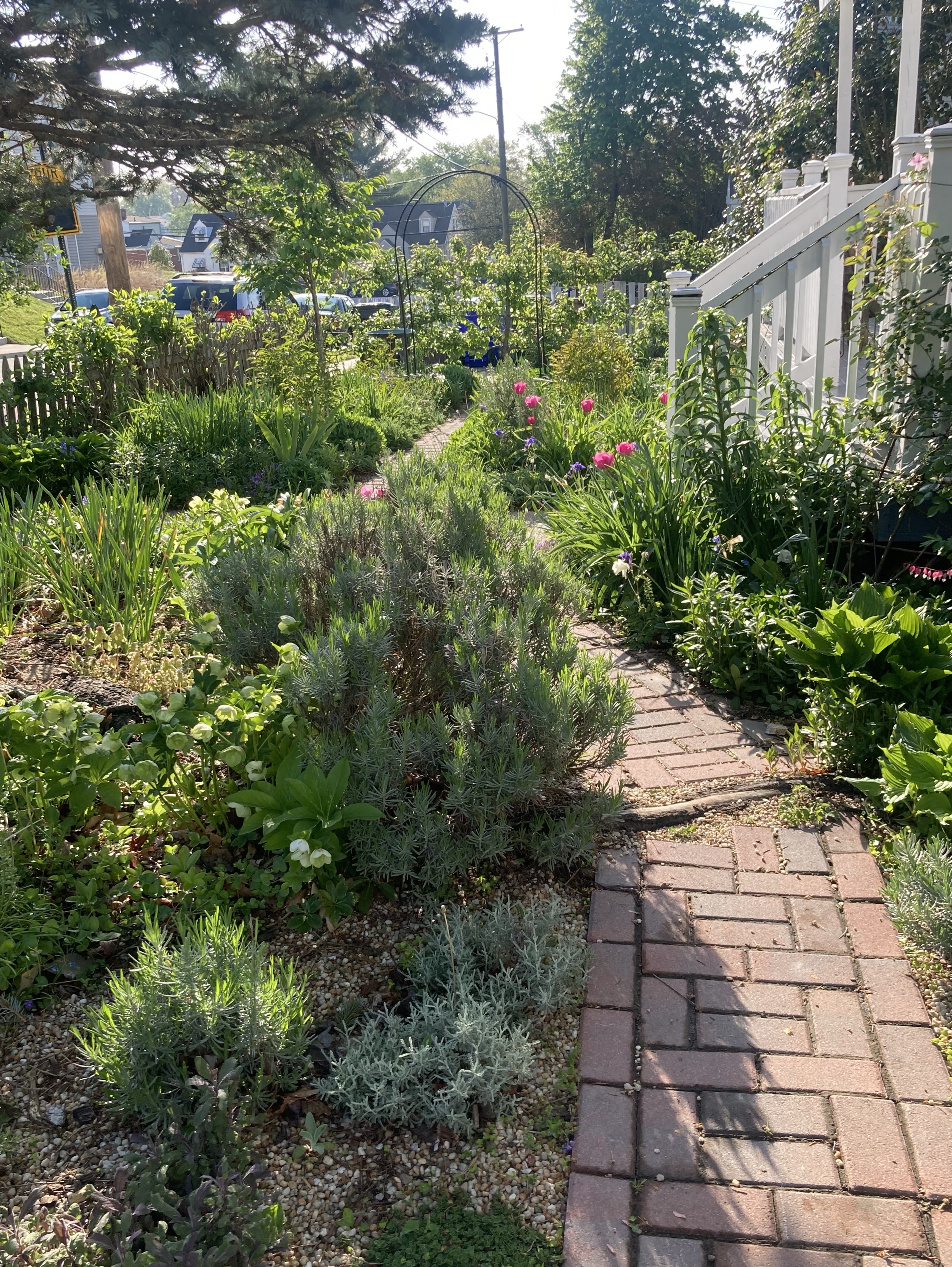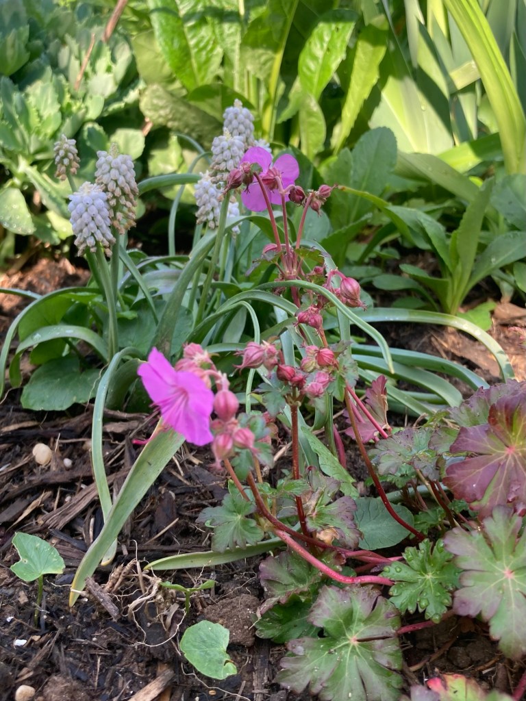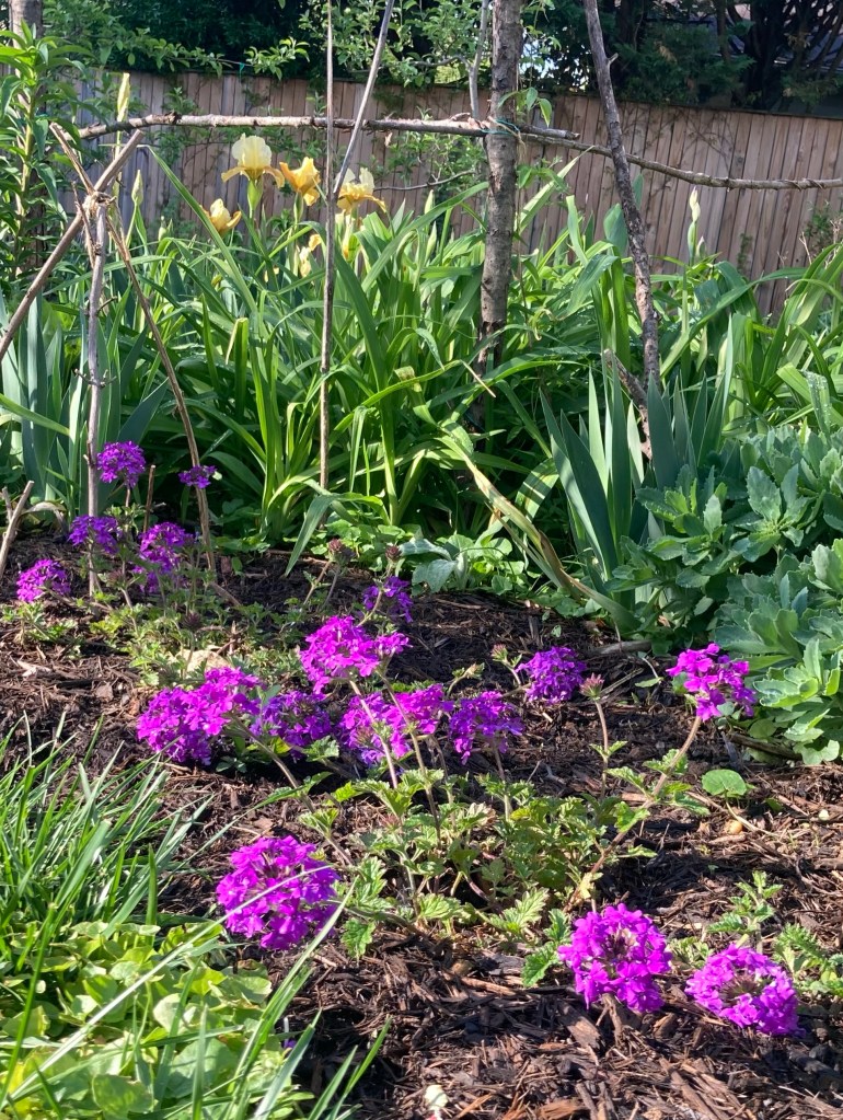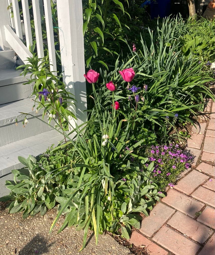 Note to self – add more of these lipstick pink tulips all through the bed to the pear treesClematis MontanaBaptisia “Lemon Meringue”I have no clue what these tulips are, but I want more!Verbena “Homestead Purple”Canine PondicusGeranium Cambridge “Karmina”Epimedium