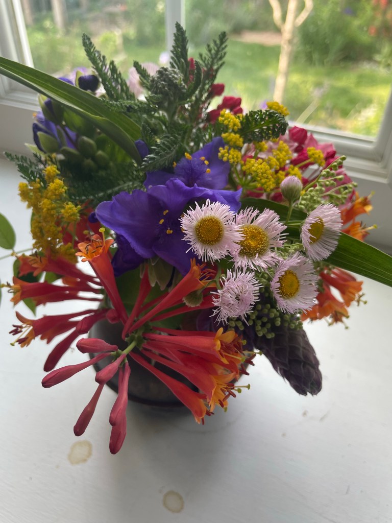 From one morning in May. Includes honeysuckle, wisteria, fleabane, golden alexander, mountain laurel, elderflower, yarrow, and spiderwort.